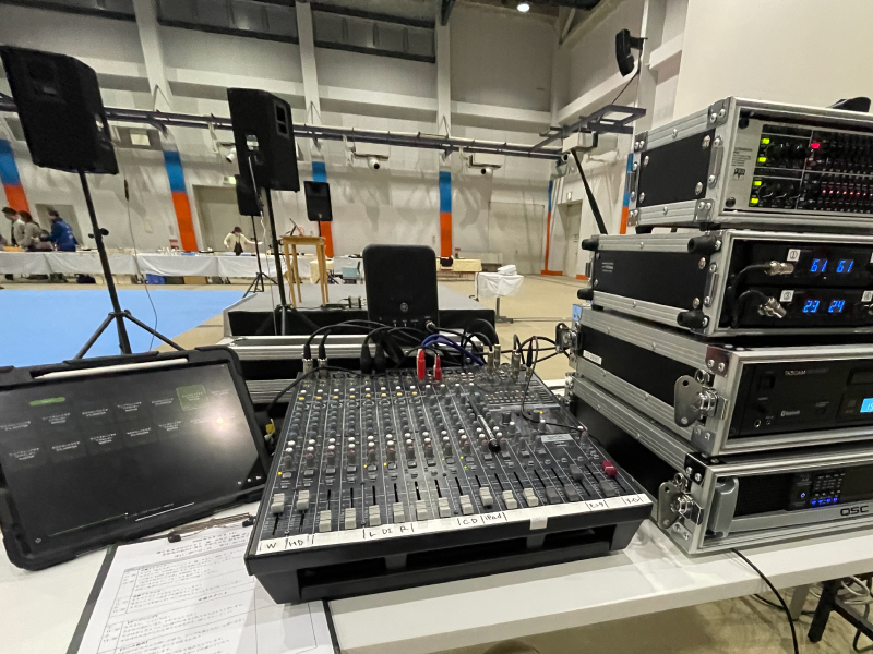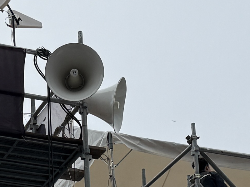 催事内容の案内や、迷子、落とし物のインフォメーションなど、イベント会場全体に向けて設置される音響。トランペットスピーカー等を使用し、会場内広範囲に向けて、インフォメーションが来場者の元へ届くように設計いたします。